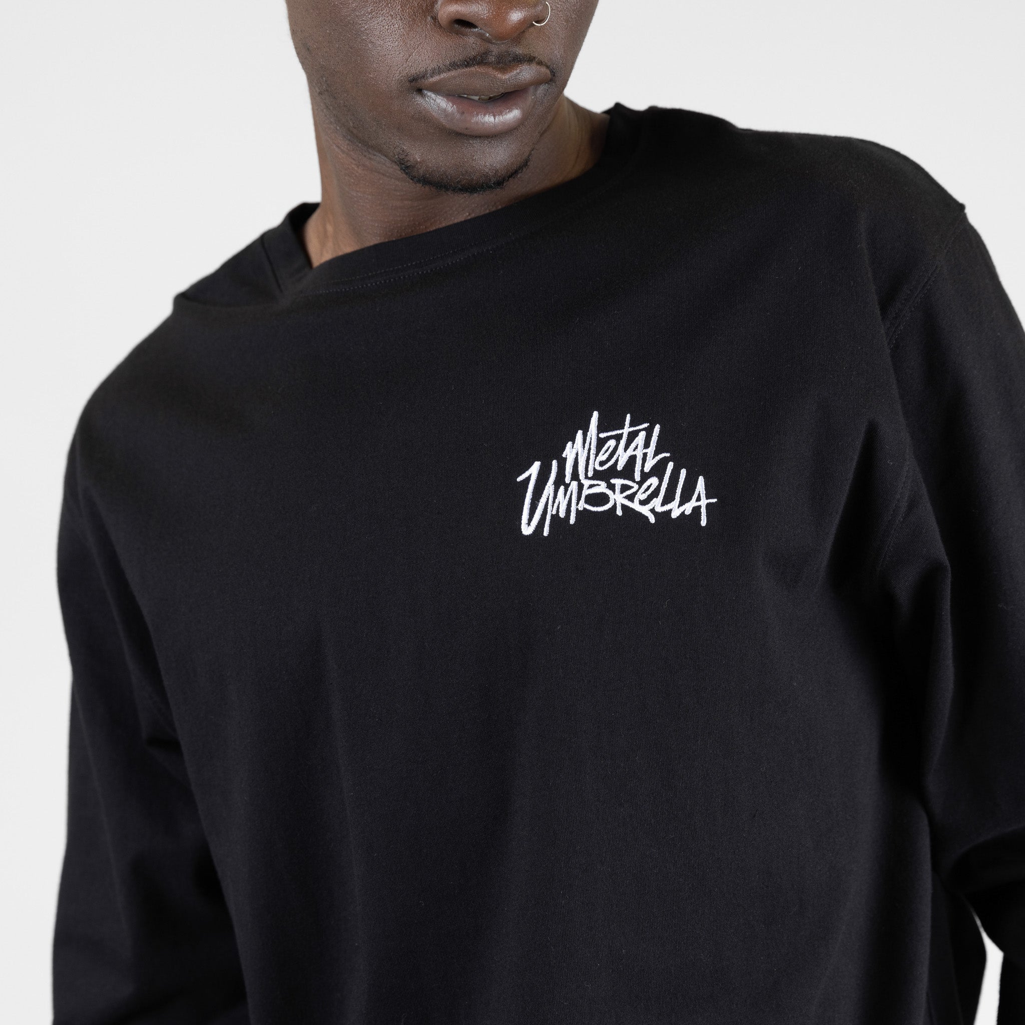 - Embroidered black Metal Umbrella wordmark on the front left chest