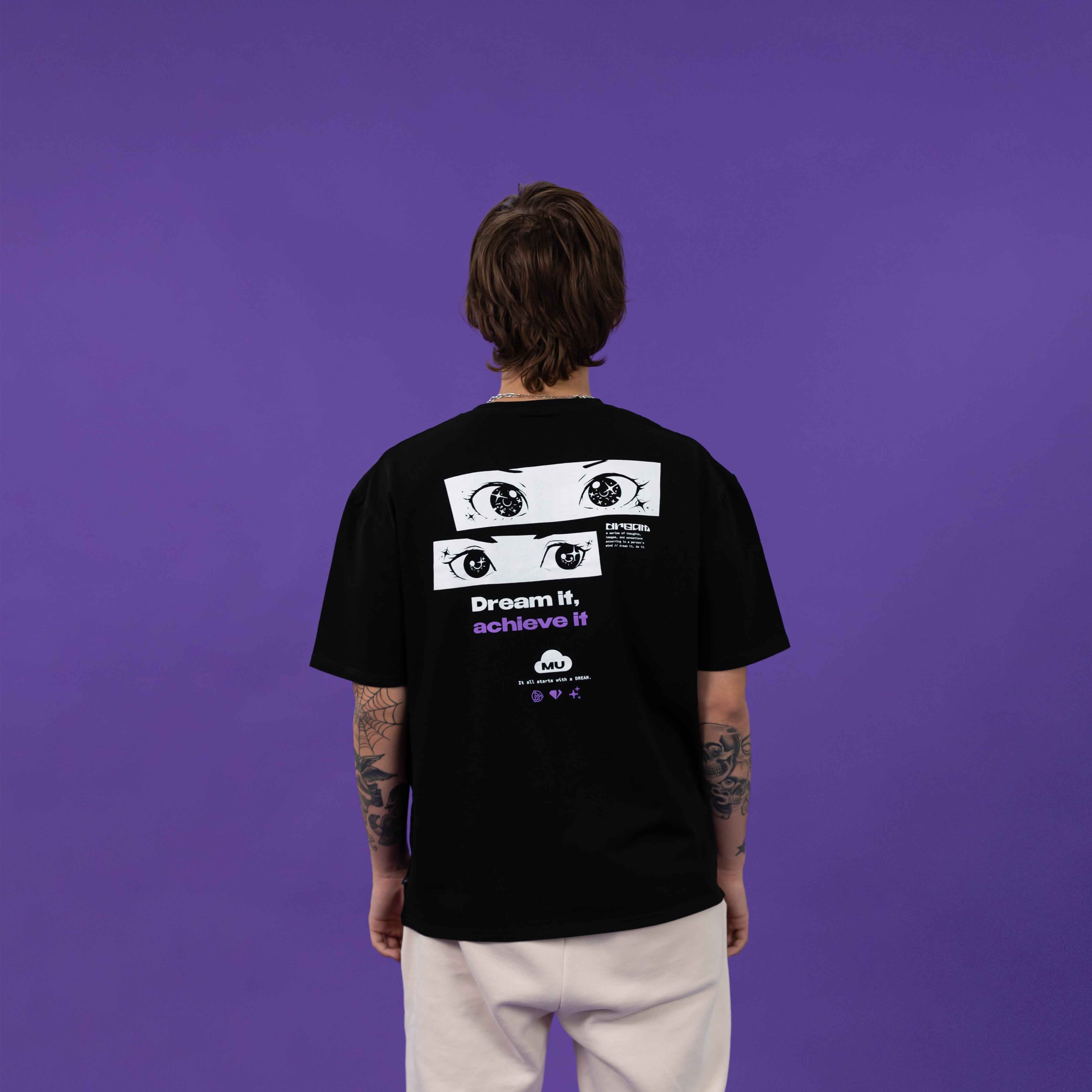 A T-shirt for those days when you're making your dream a reality. This high-quality, black graphic tee has hints of manga inspiration, and a lot of perseverance. 100% cotton so you feel cozy even when working.