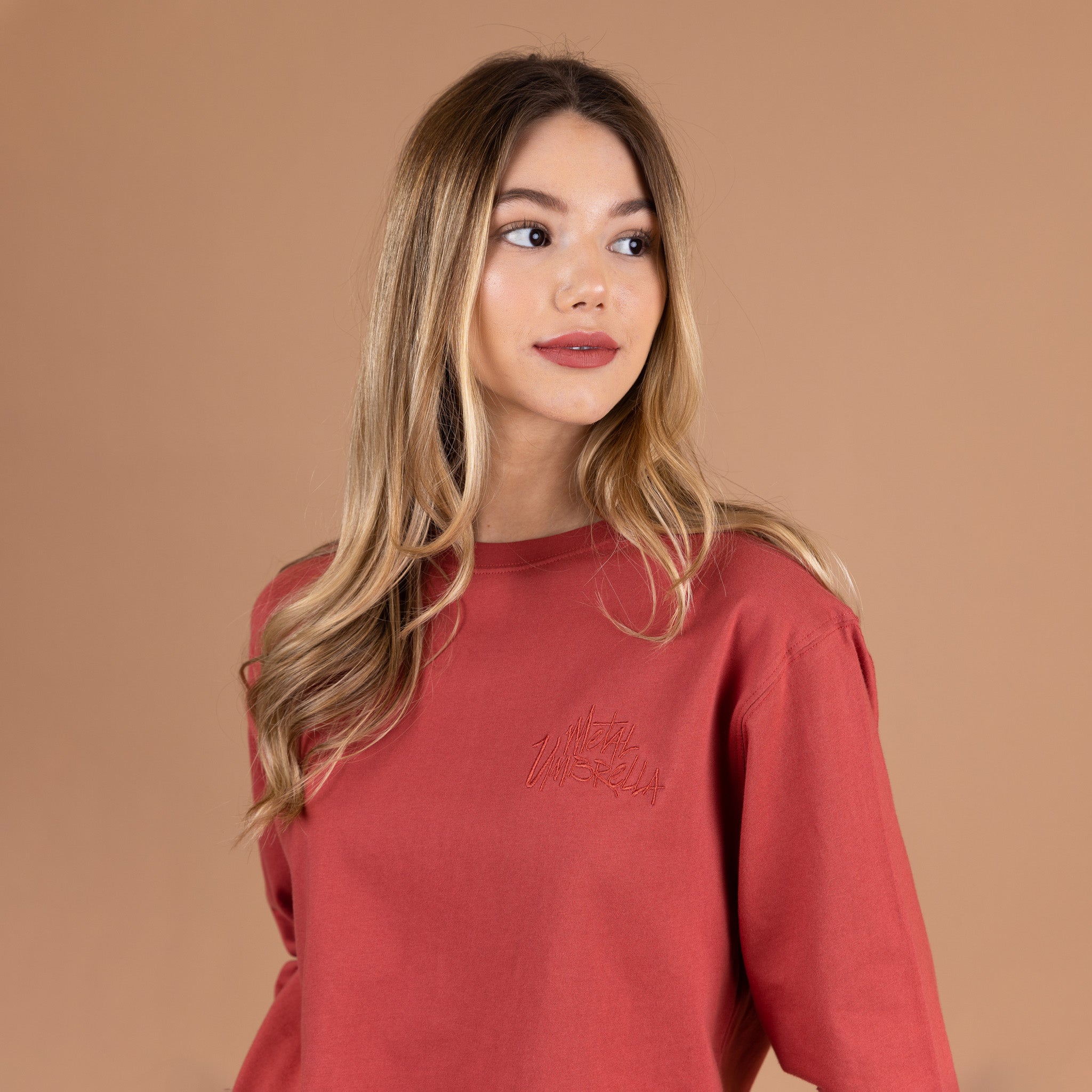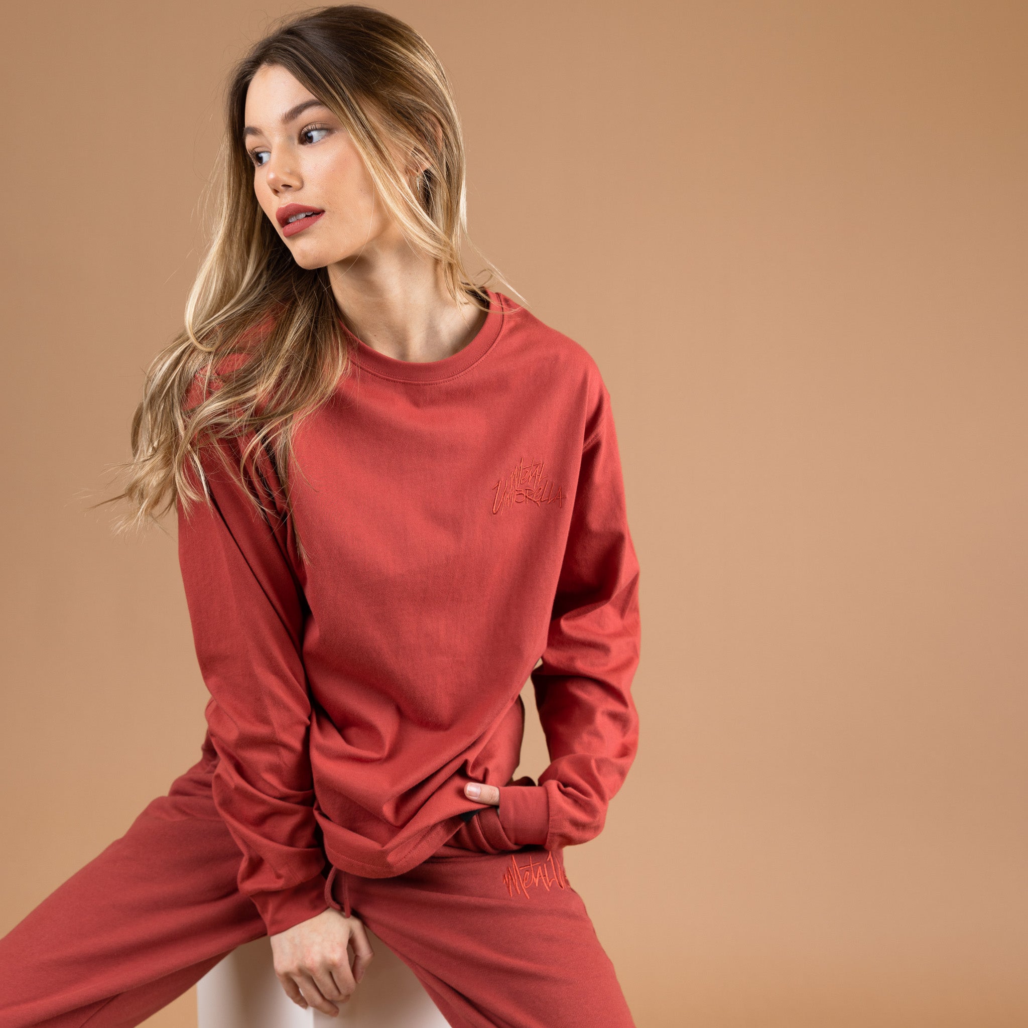 Live, play, or grind with the best of them in this classic rust long sleeve, made to fulfill the color quota in your Essential wardrobe.
