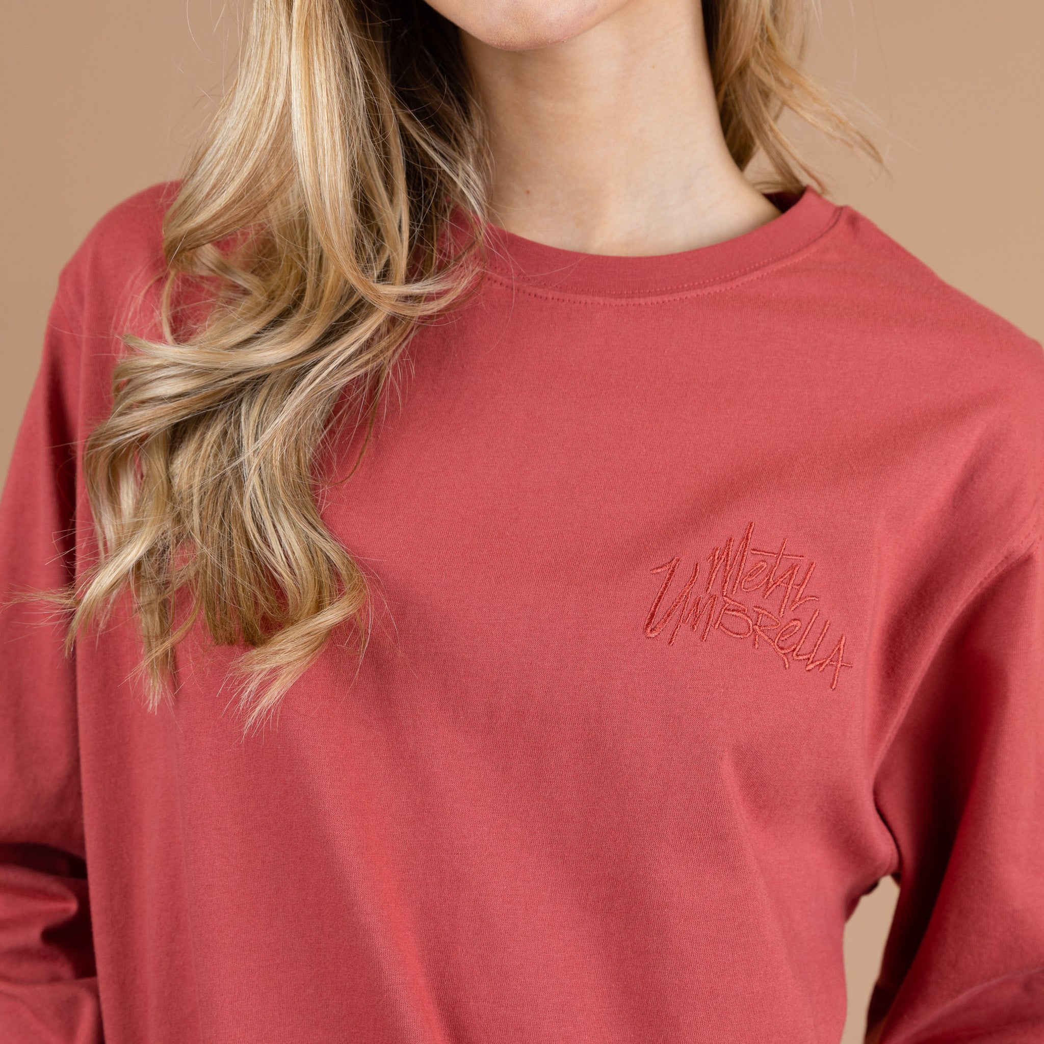 - Embroidered rust Metal Umbrella wordmark on the front left chest