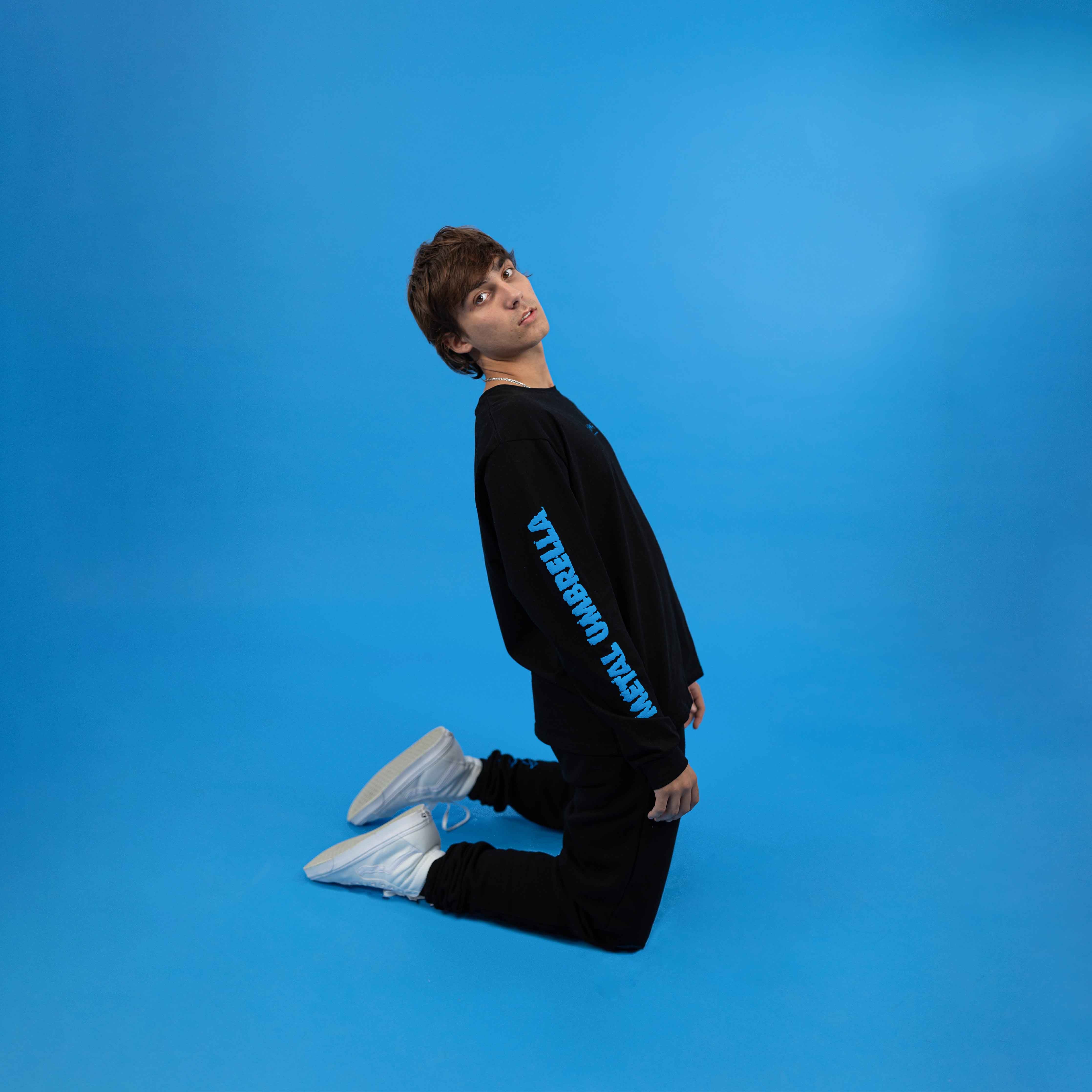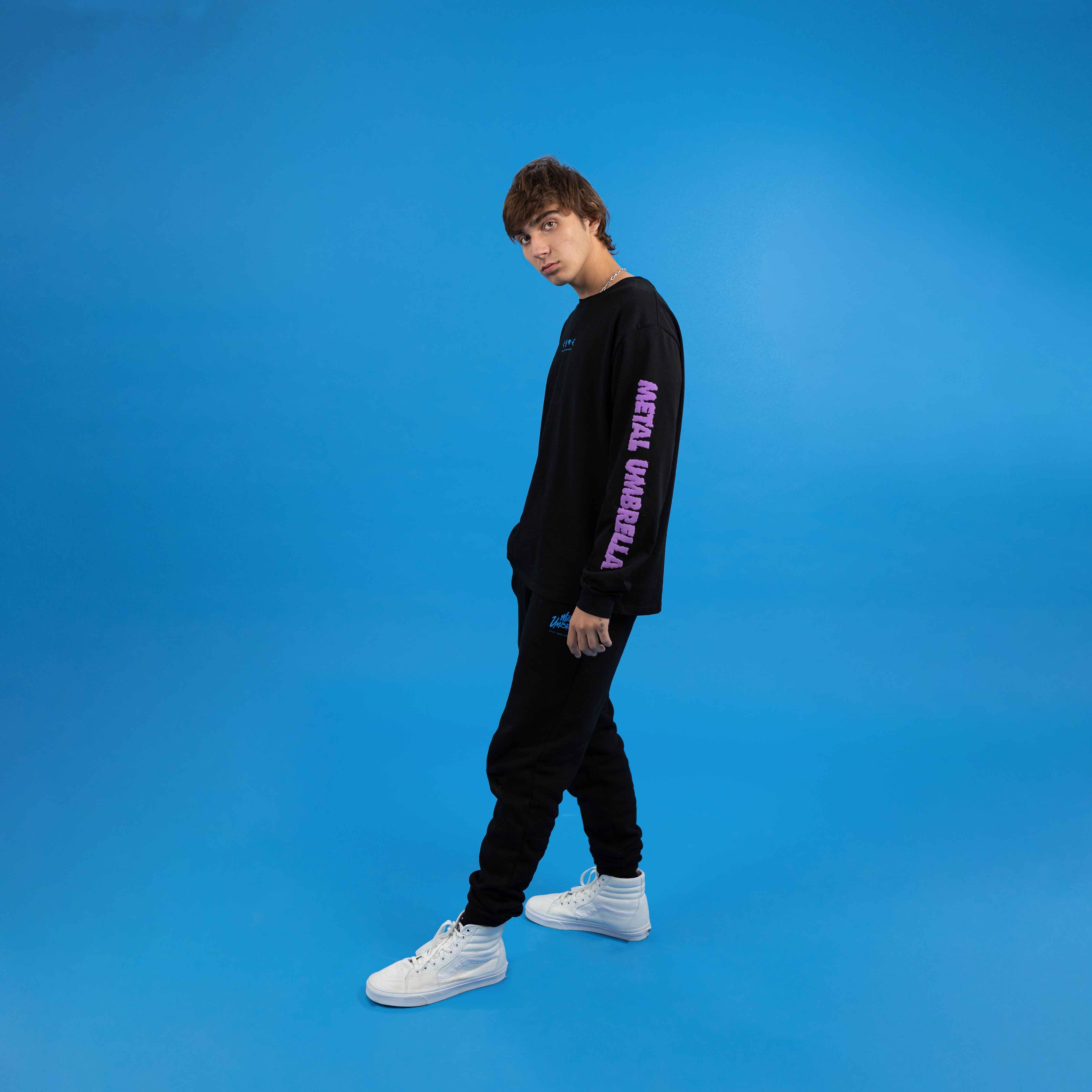 - Large purple and blue METAL UMBRELLA print down both sleeves