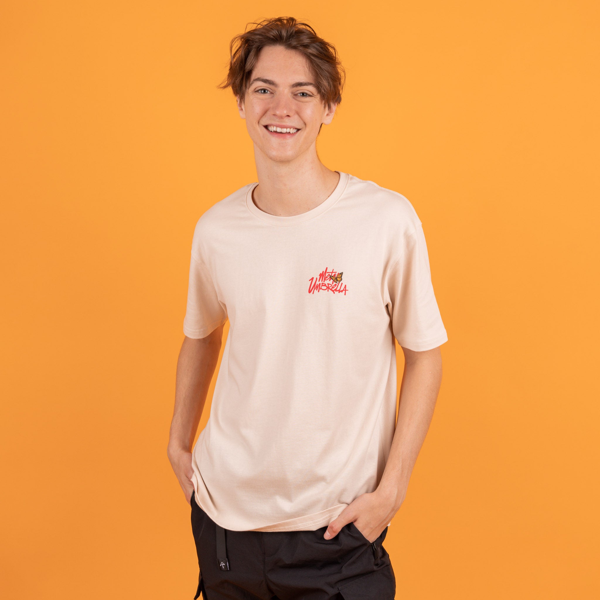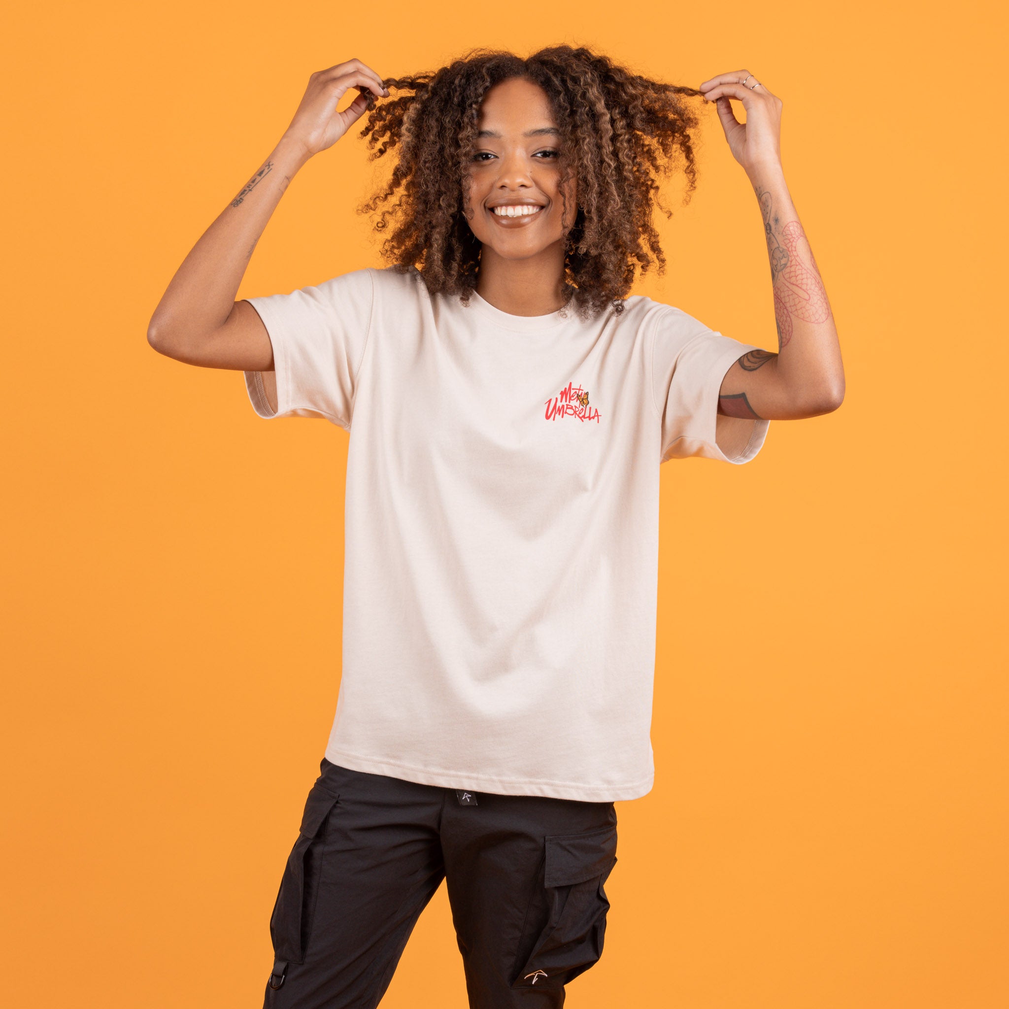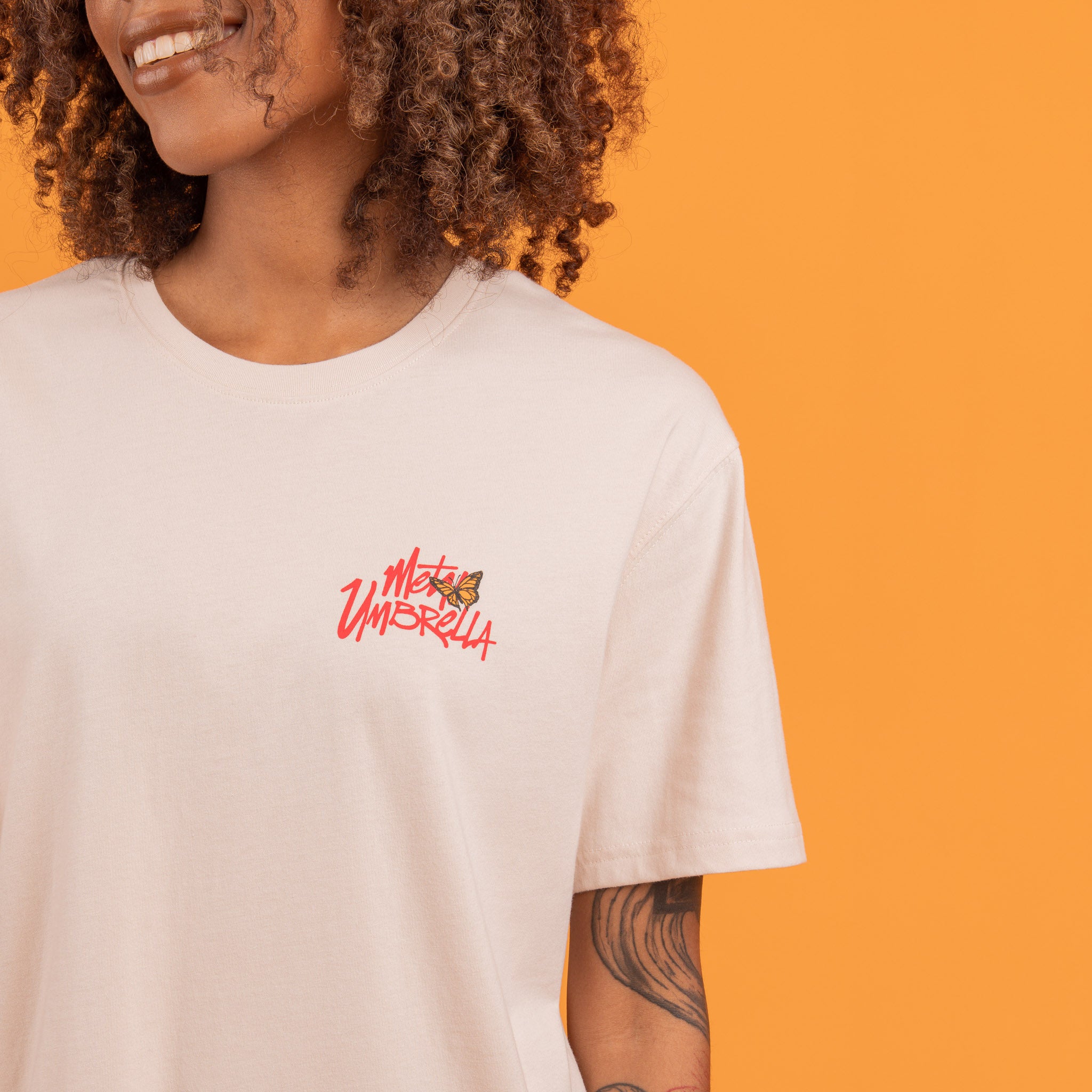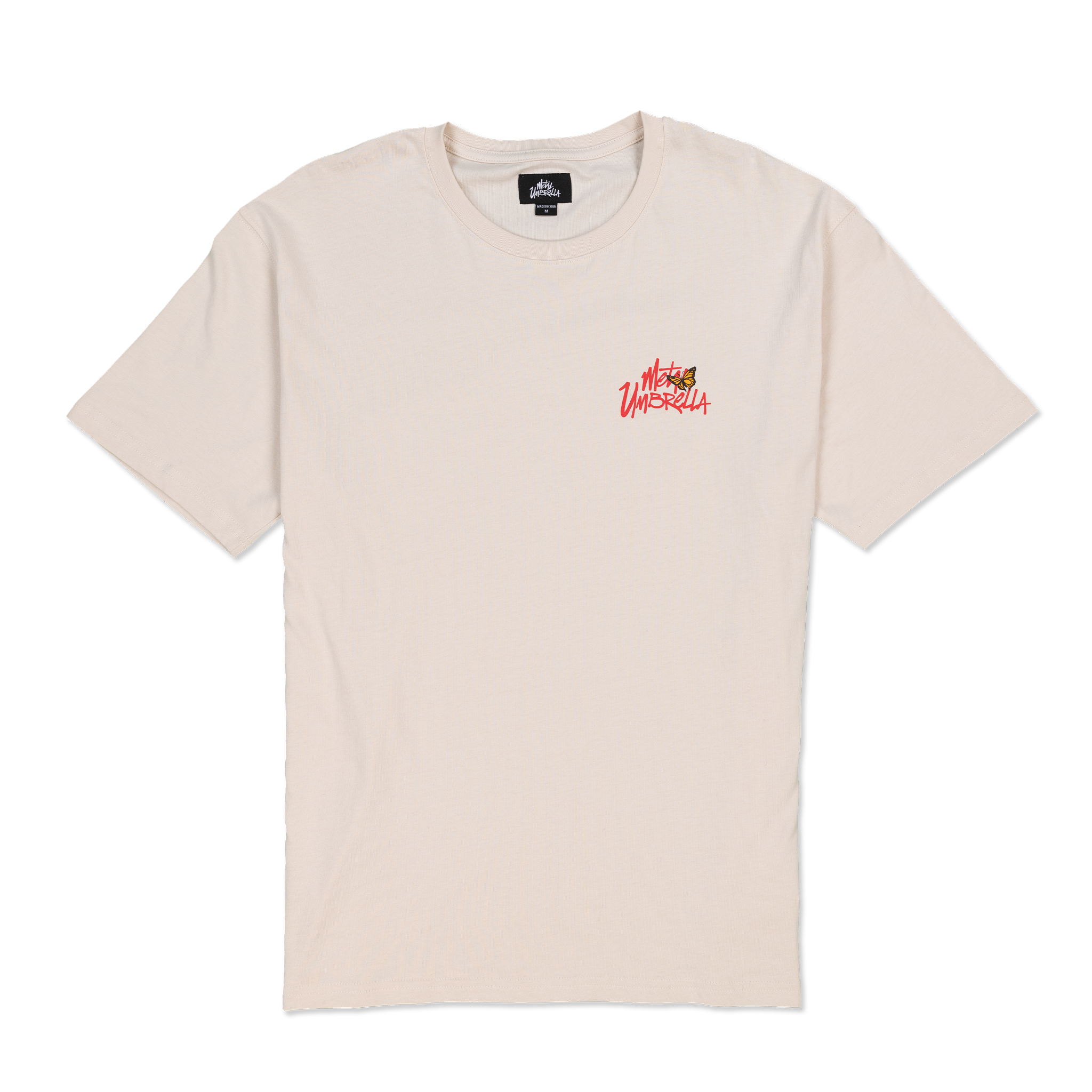 - Metal Umbrella logo with butterfly accent print on left chest