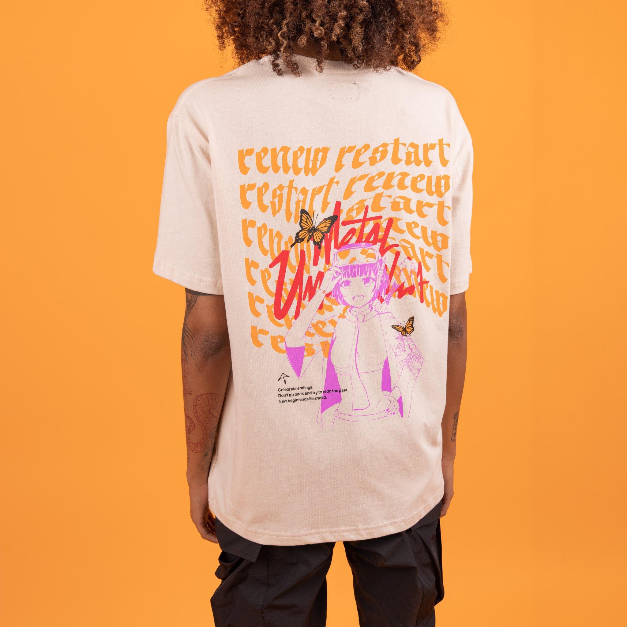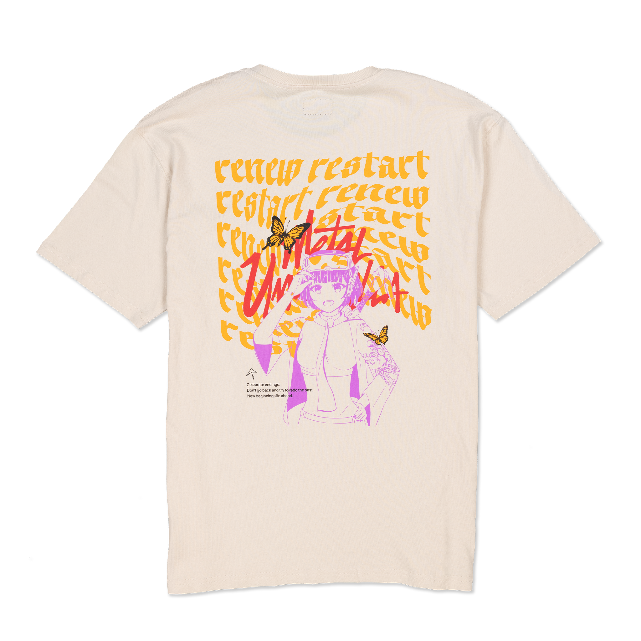 A different kind of renewable energy. Settle into the comfort of this bone-colored iteration of the Renew/Restart t-shirt.
