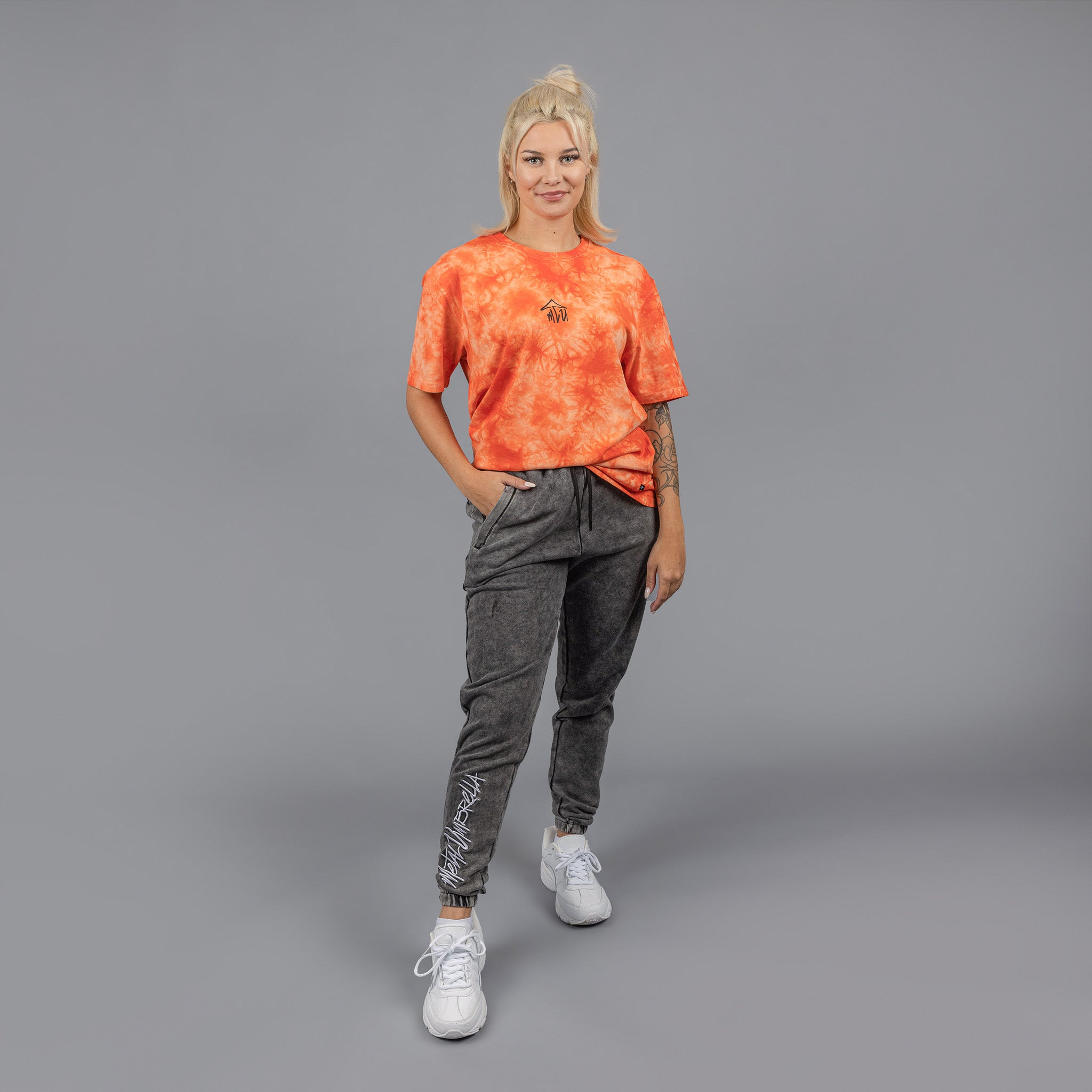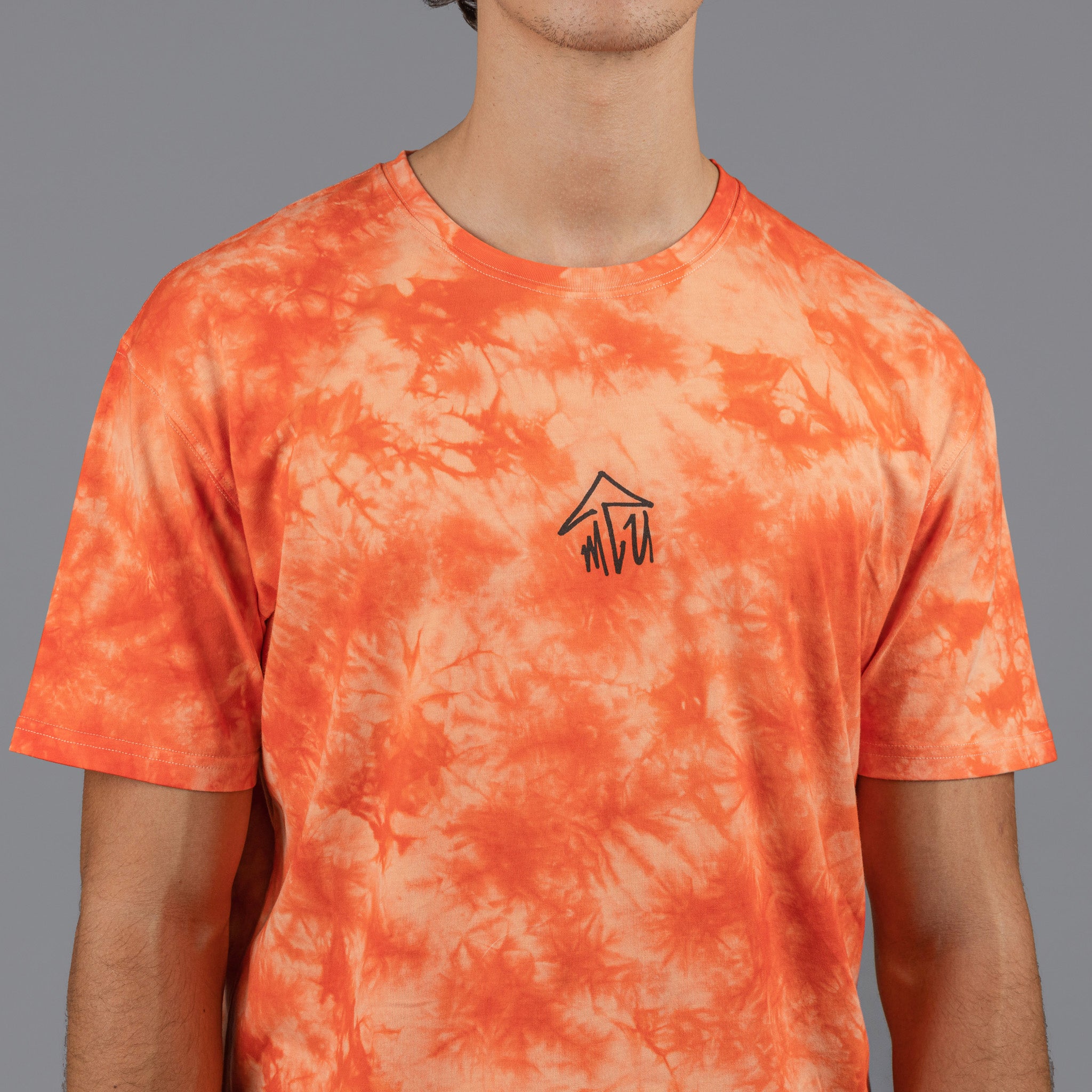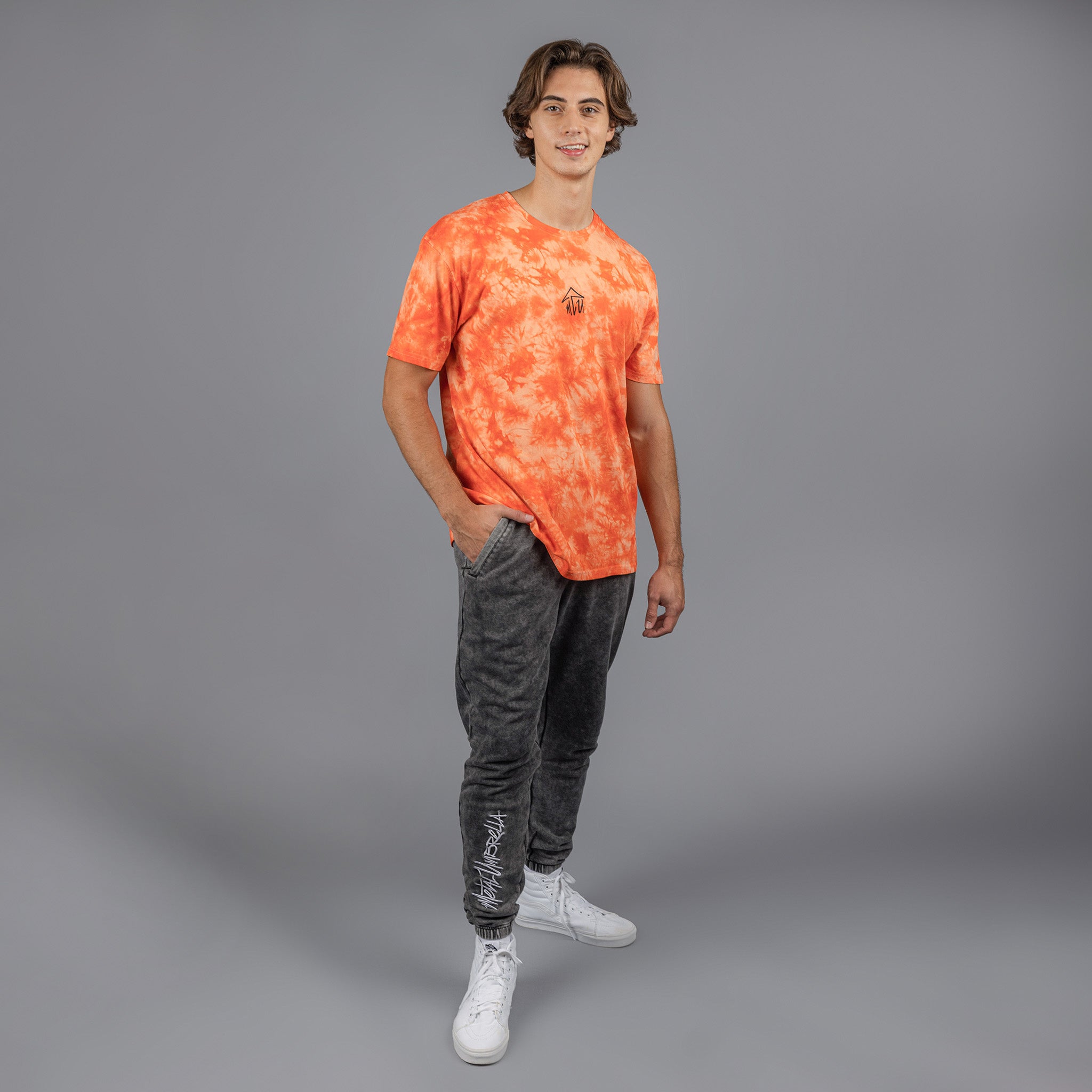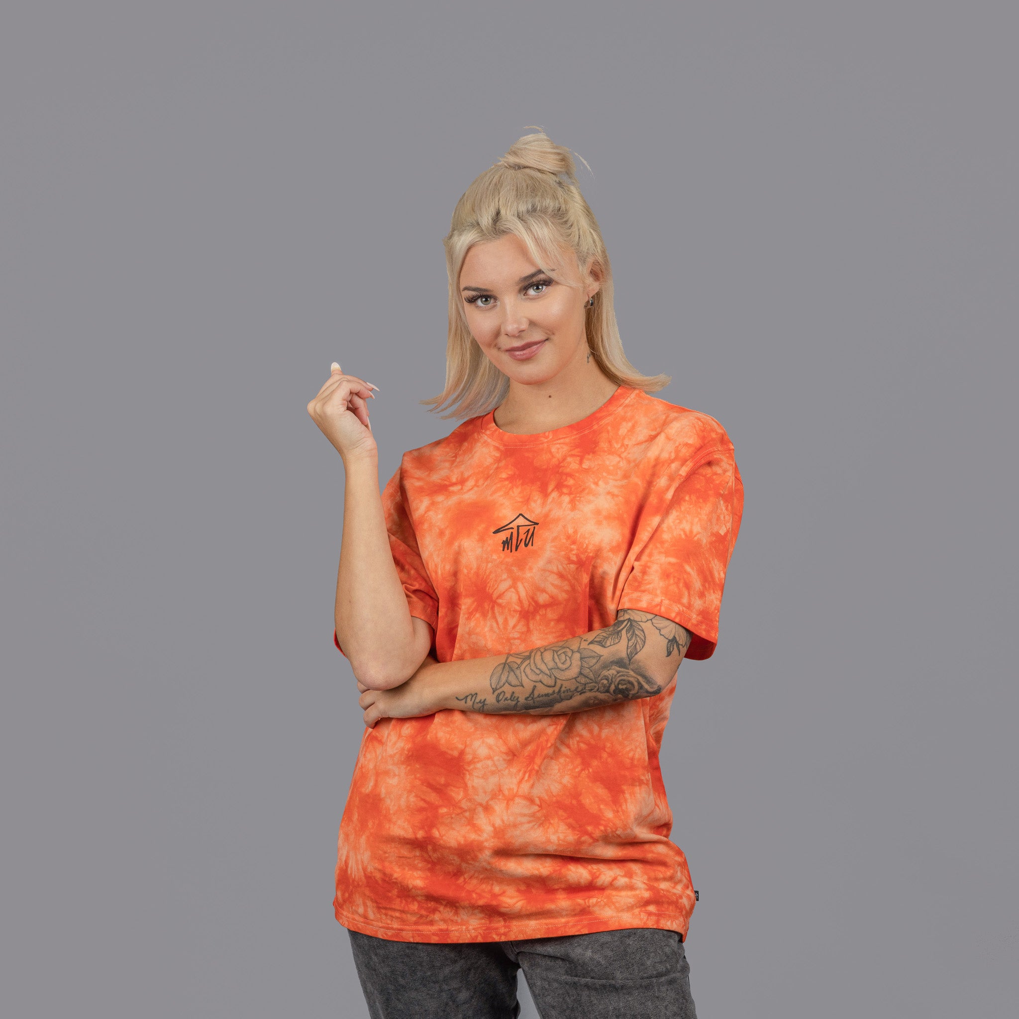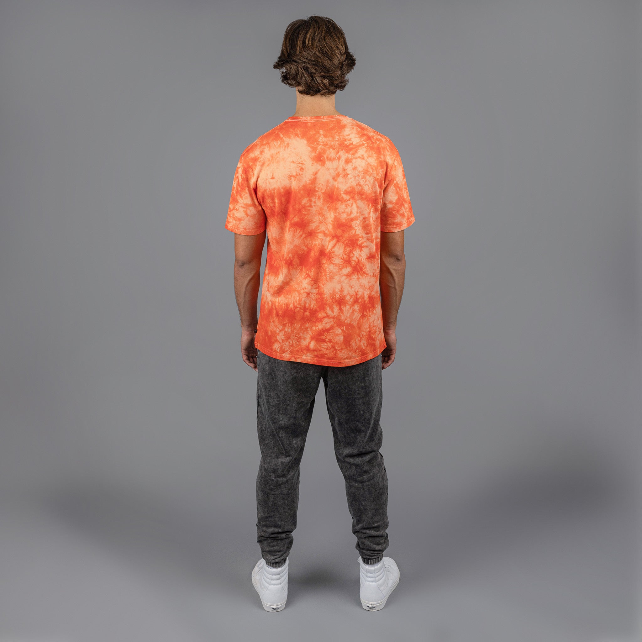 Is it just us, or can you also see this in a music video? This color pops off, just like you - Our bold orange tie-dye t-shirt will jumpstart your evolution.