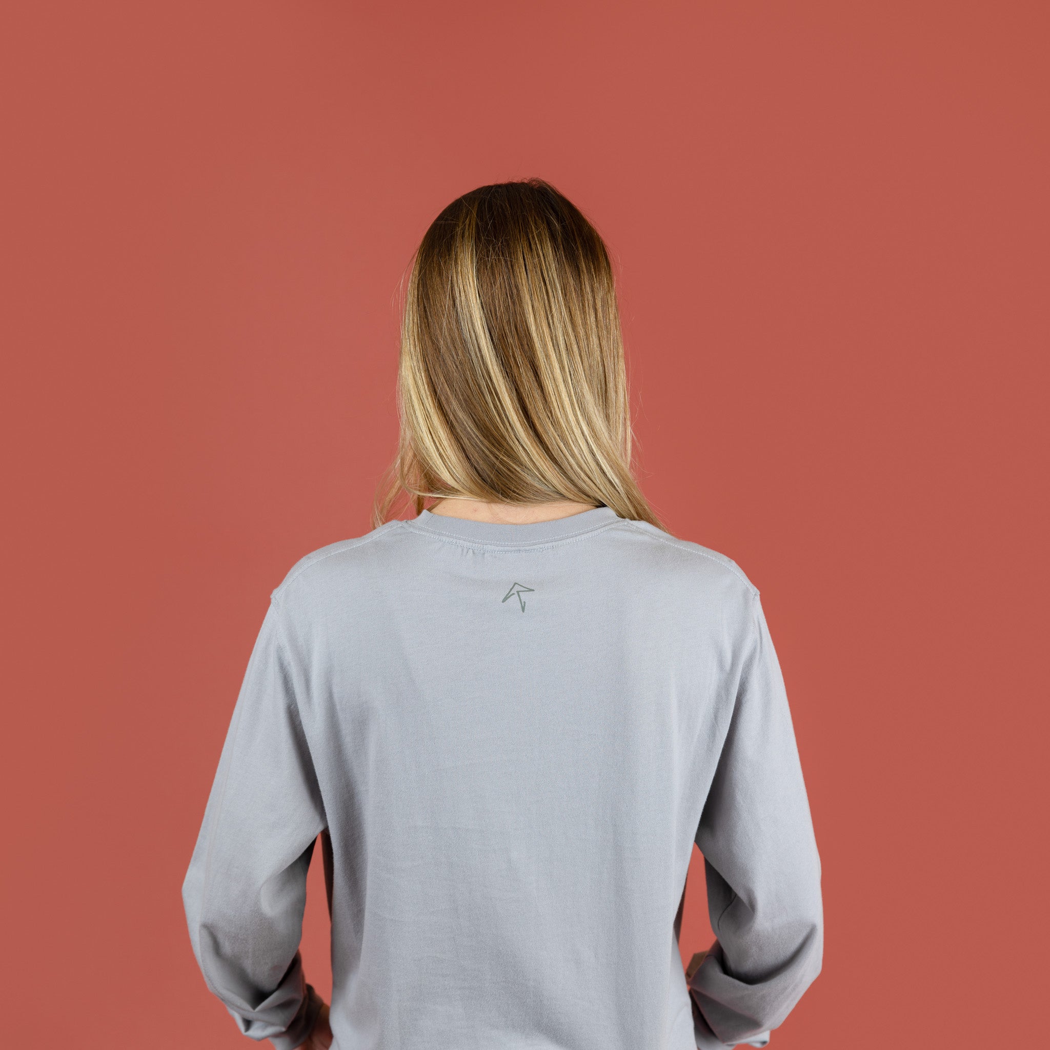 This classic grey long sleeve is an entire modern vibe, regardless of whether the sleeves are rolled up or not.
