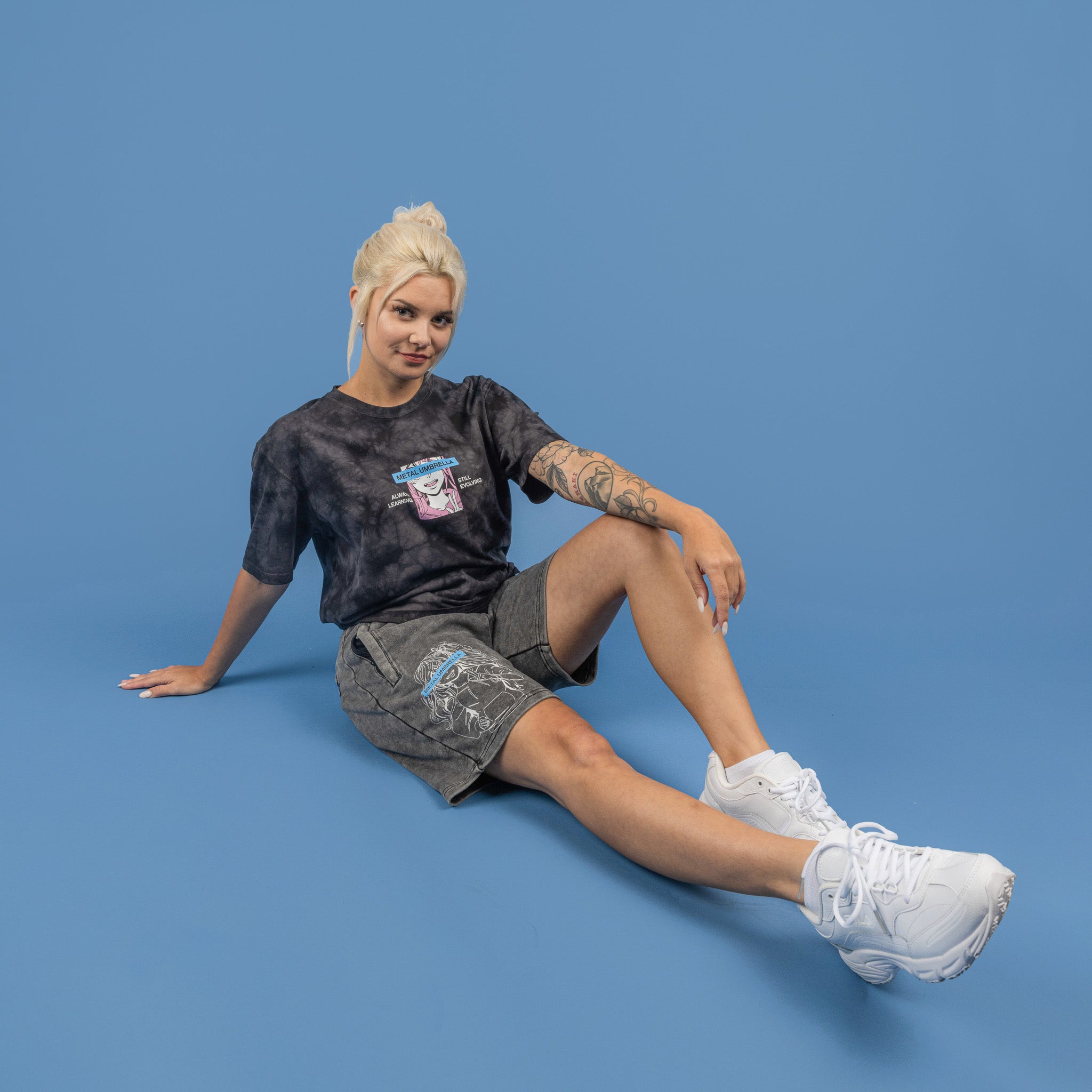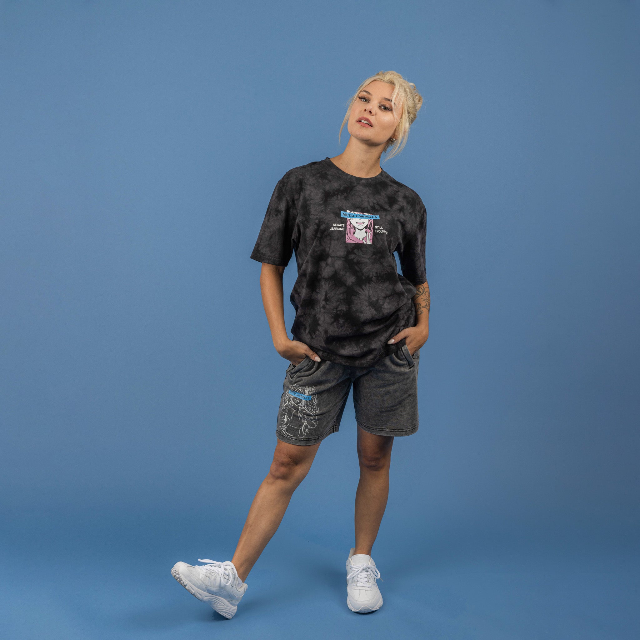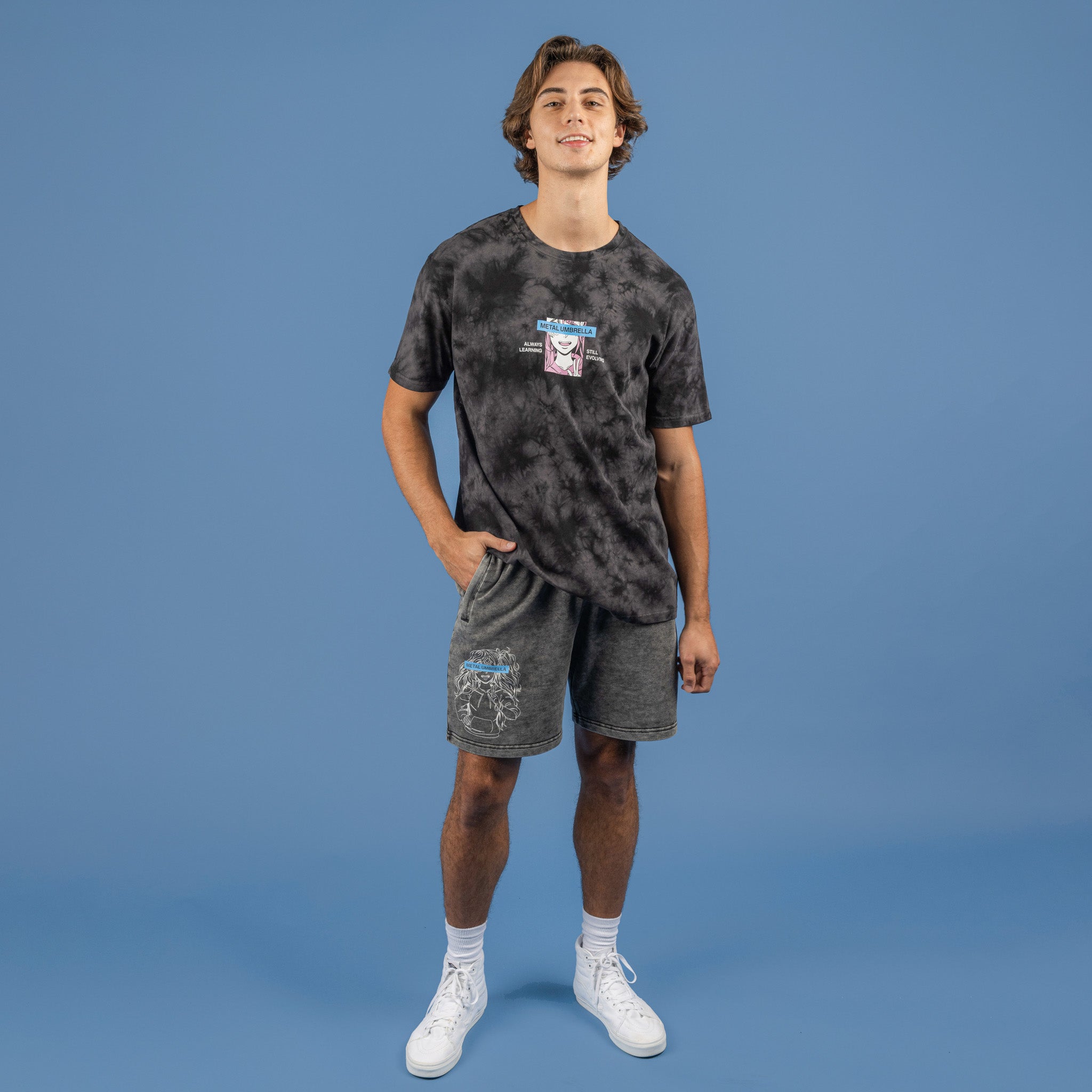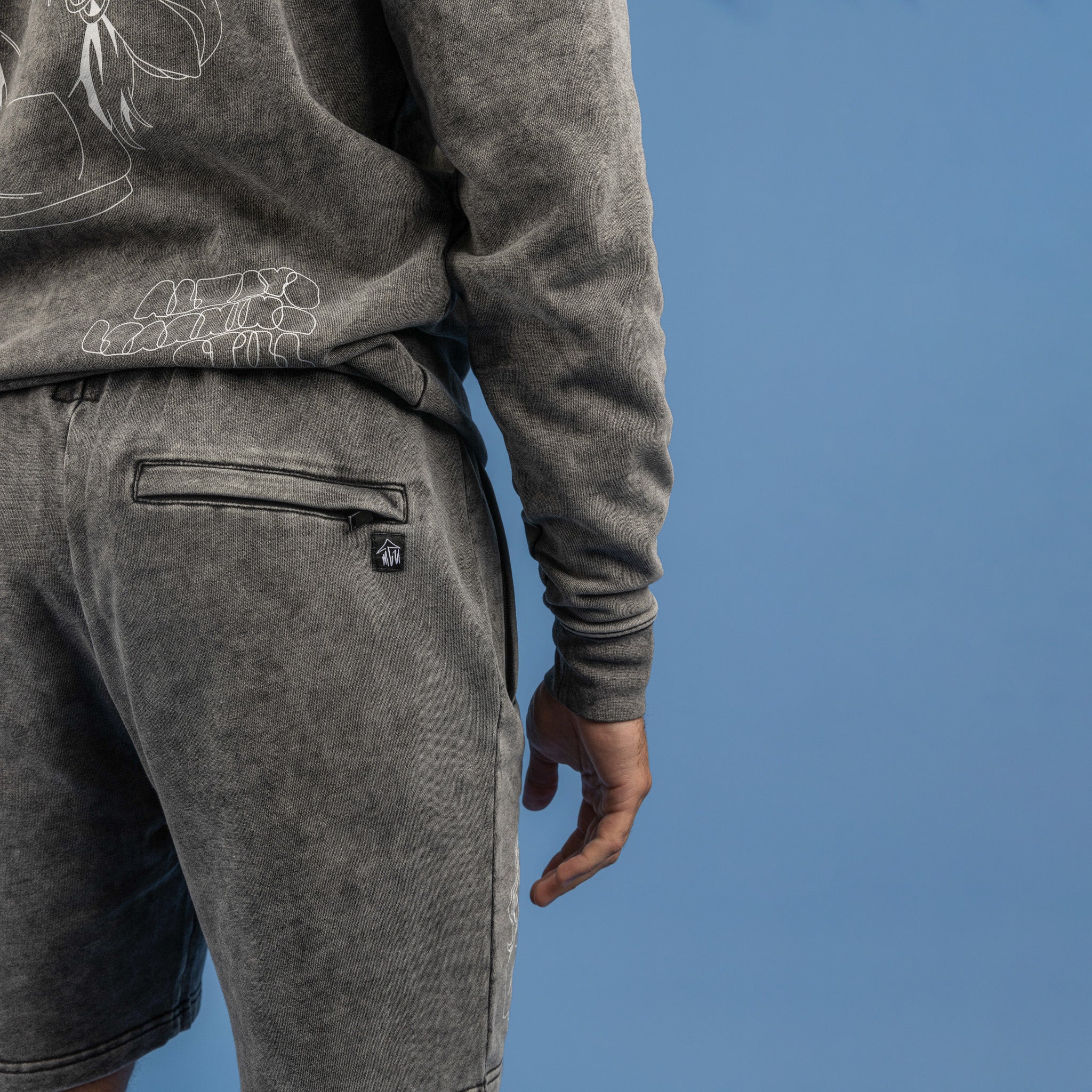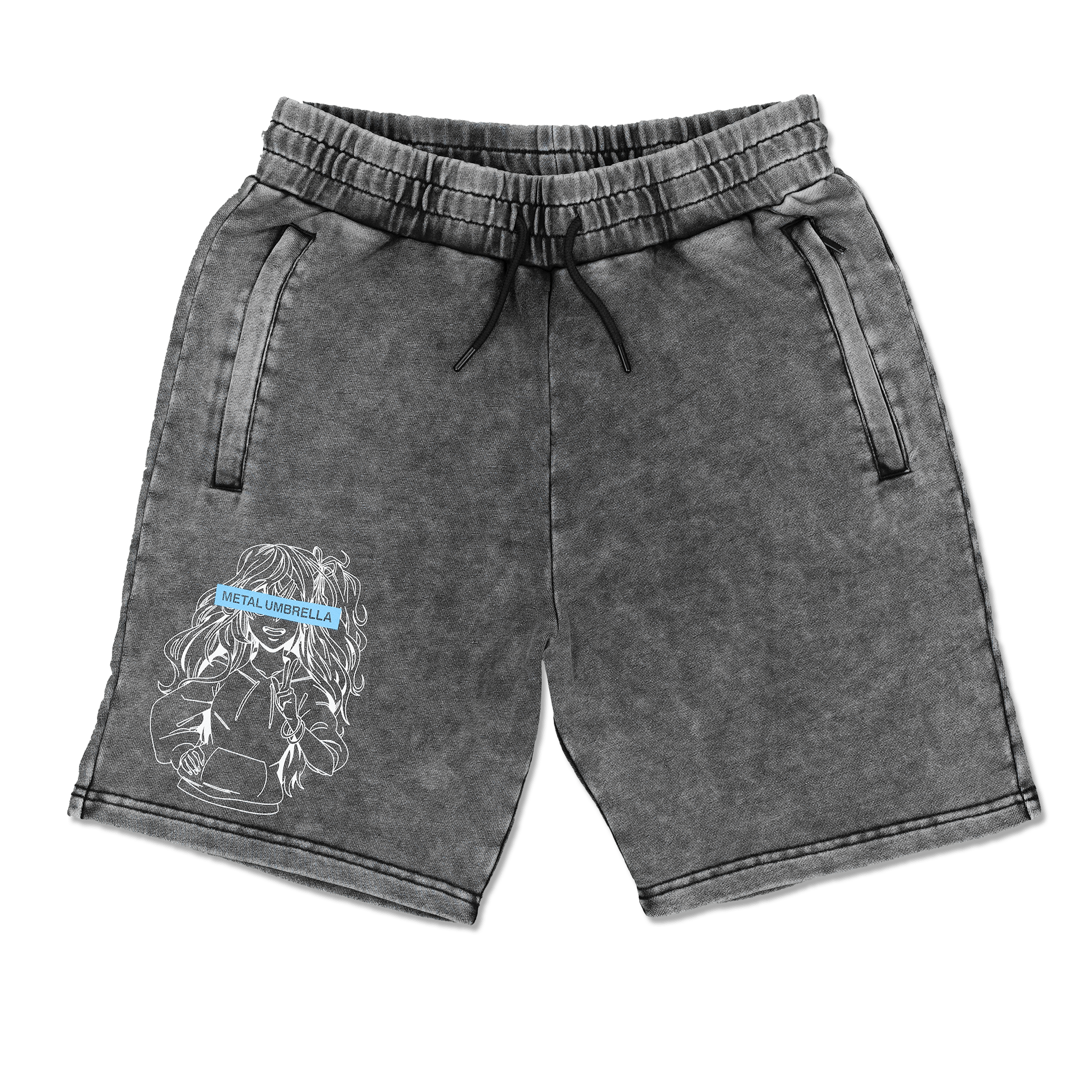 This mineral washed aesthetic featuring our original MU character design is a whole mood. Honestly, the zipper/drawstring combo really brings these shorts and your look together.