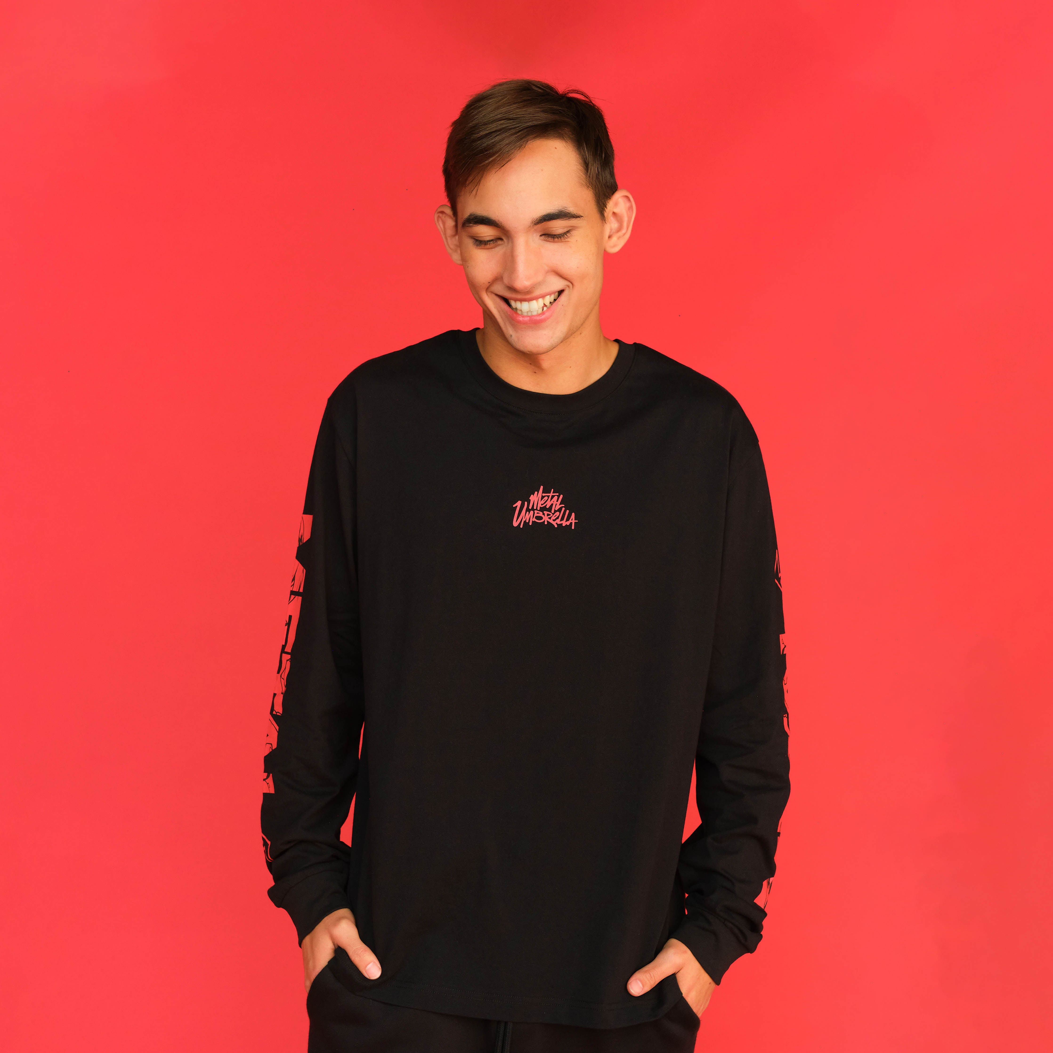 - Original Metal Umbrella art print featuring the character Cypher across back