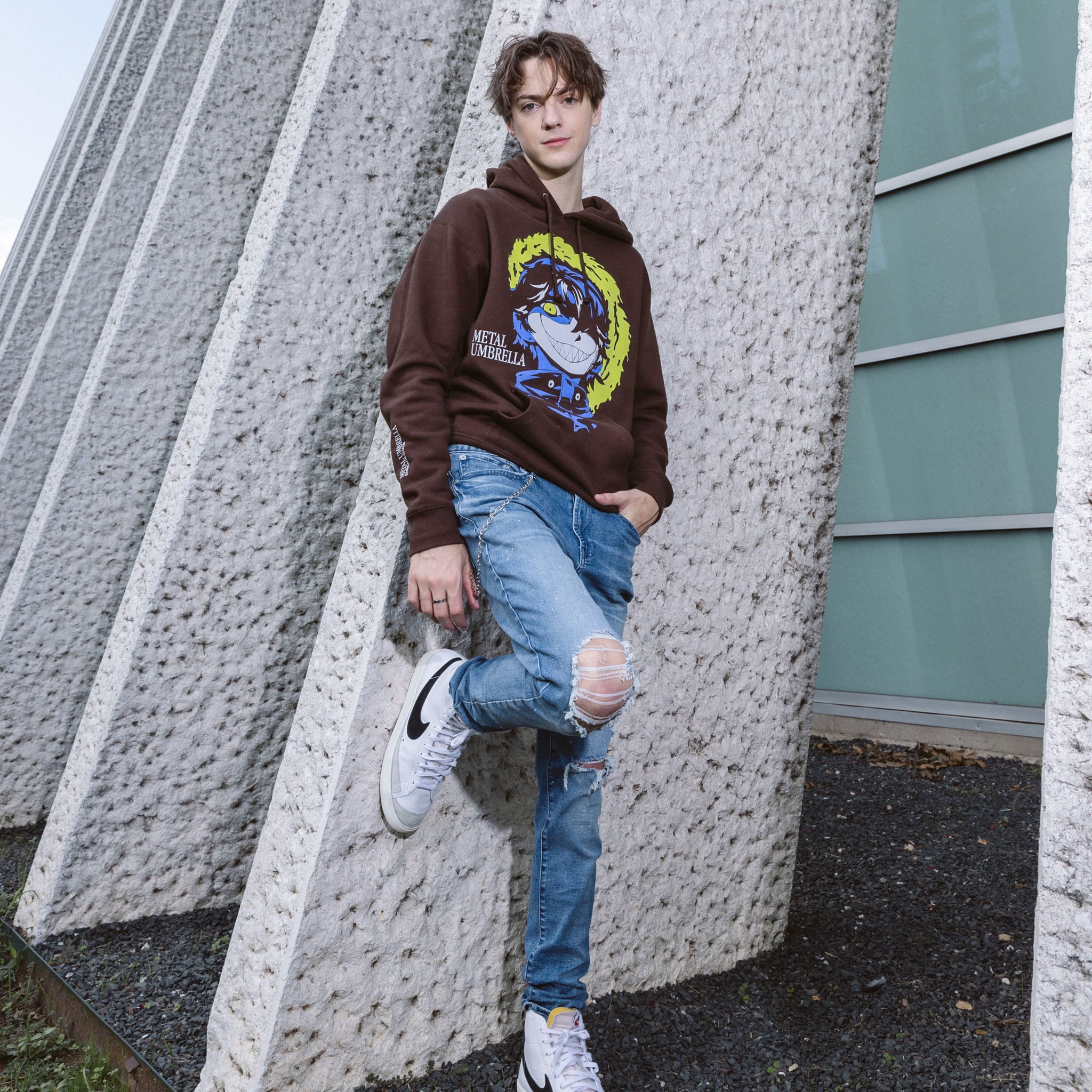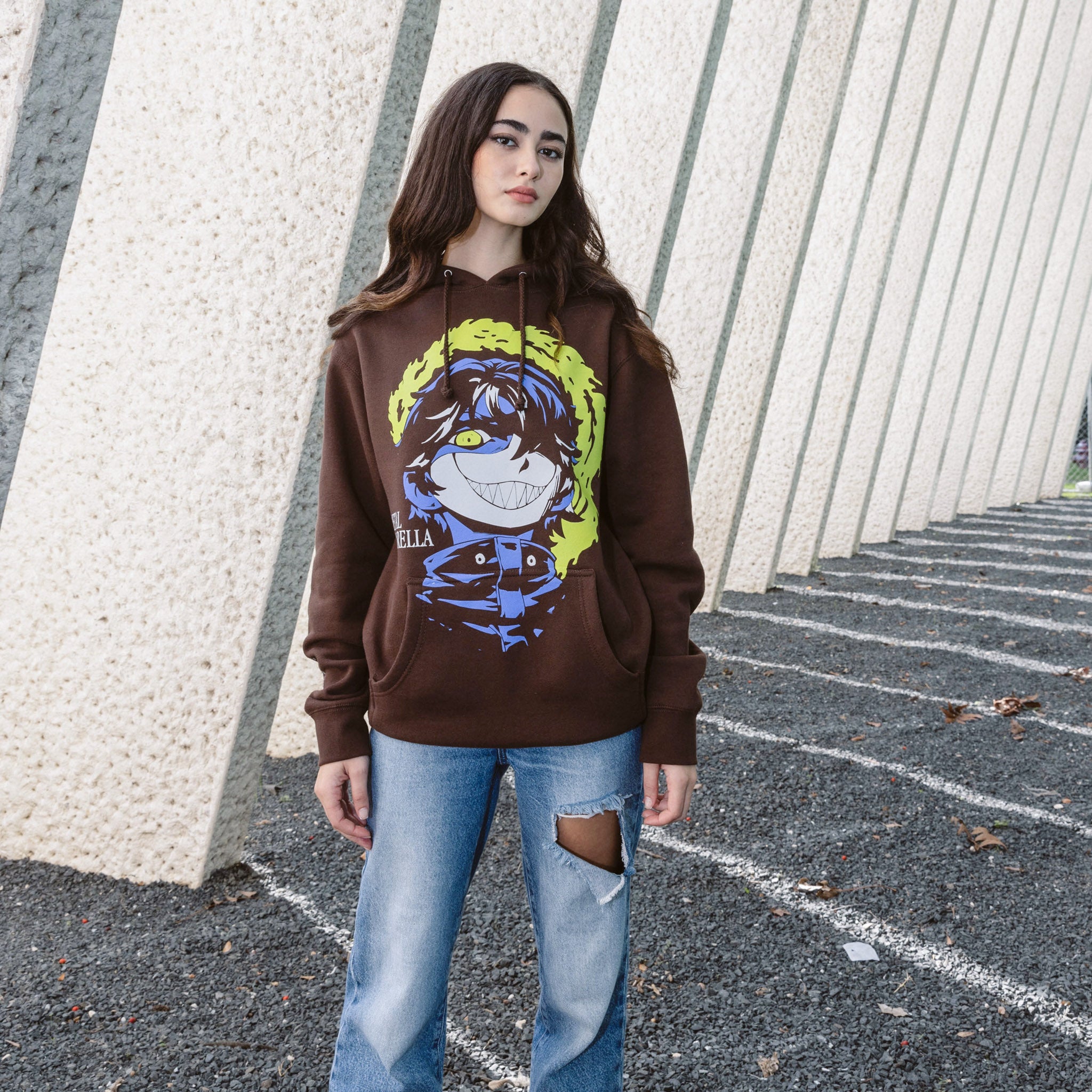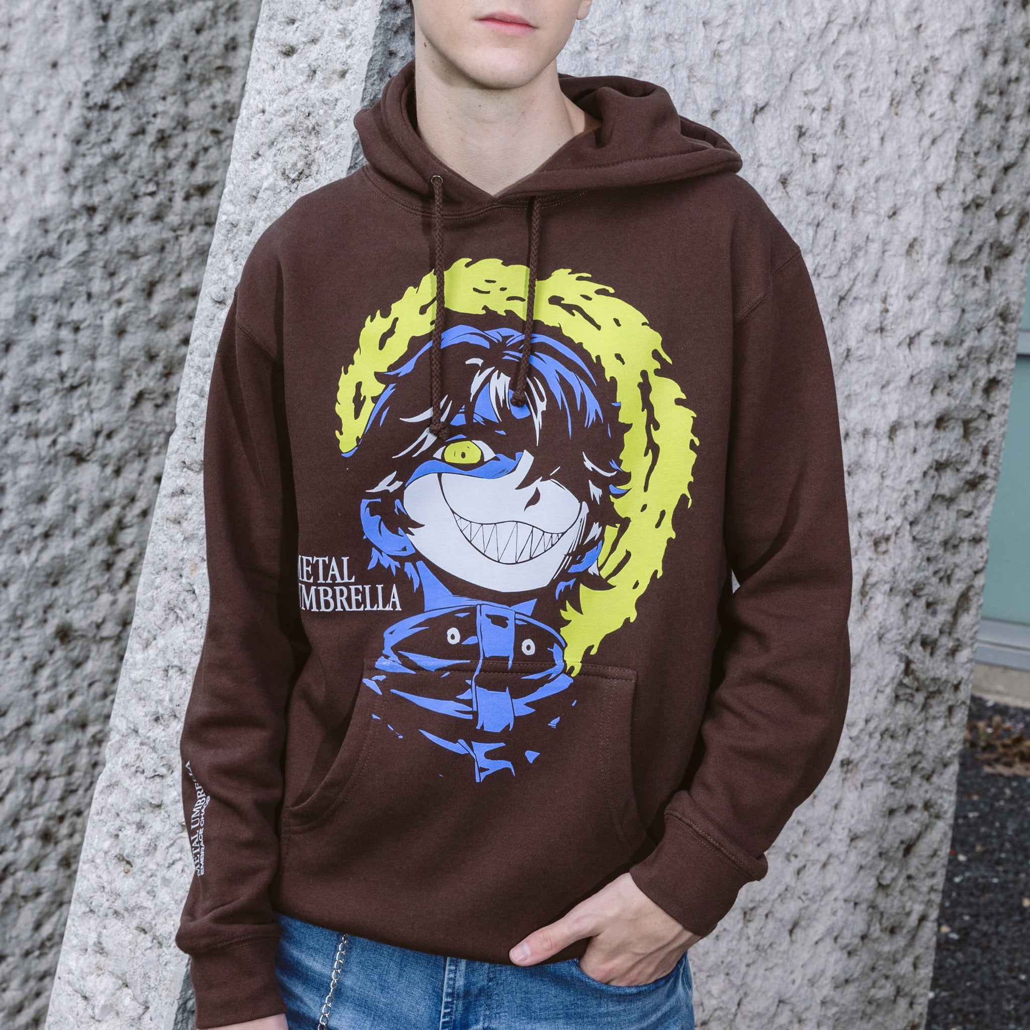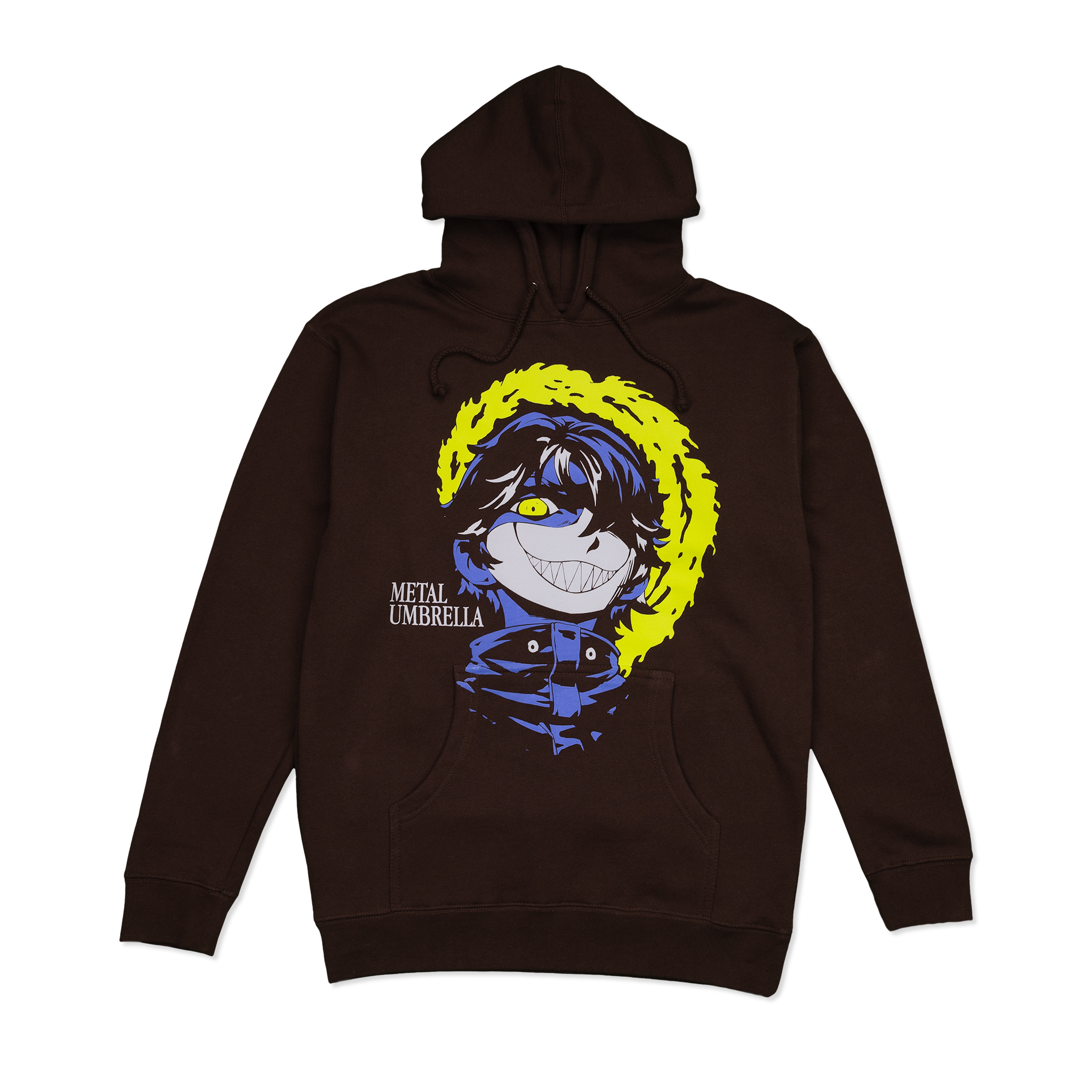 Brown hoodie featuring the sinister Raptor in graphics on the front and sleeve. Just a little bit vicious.
