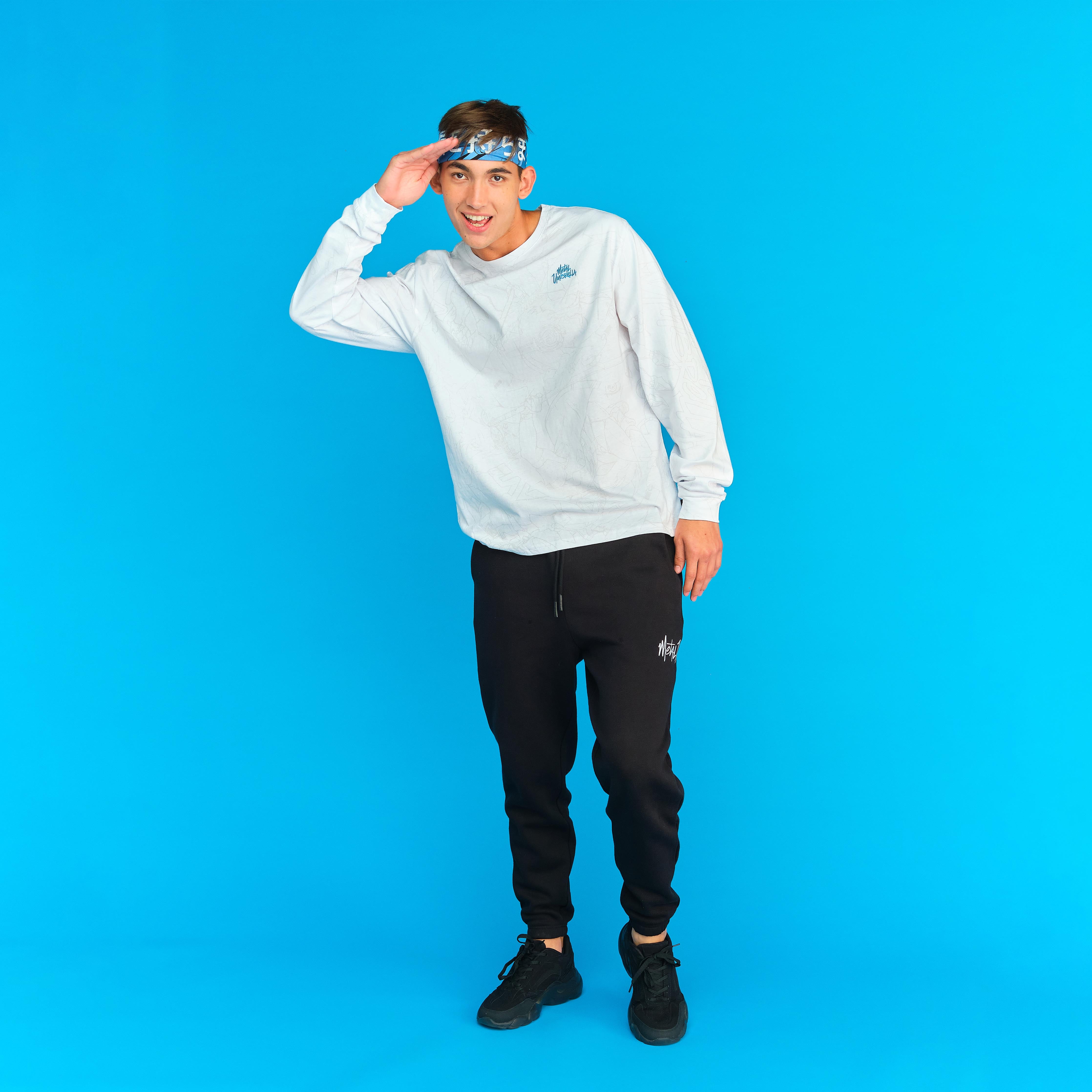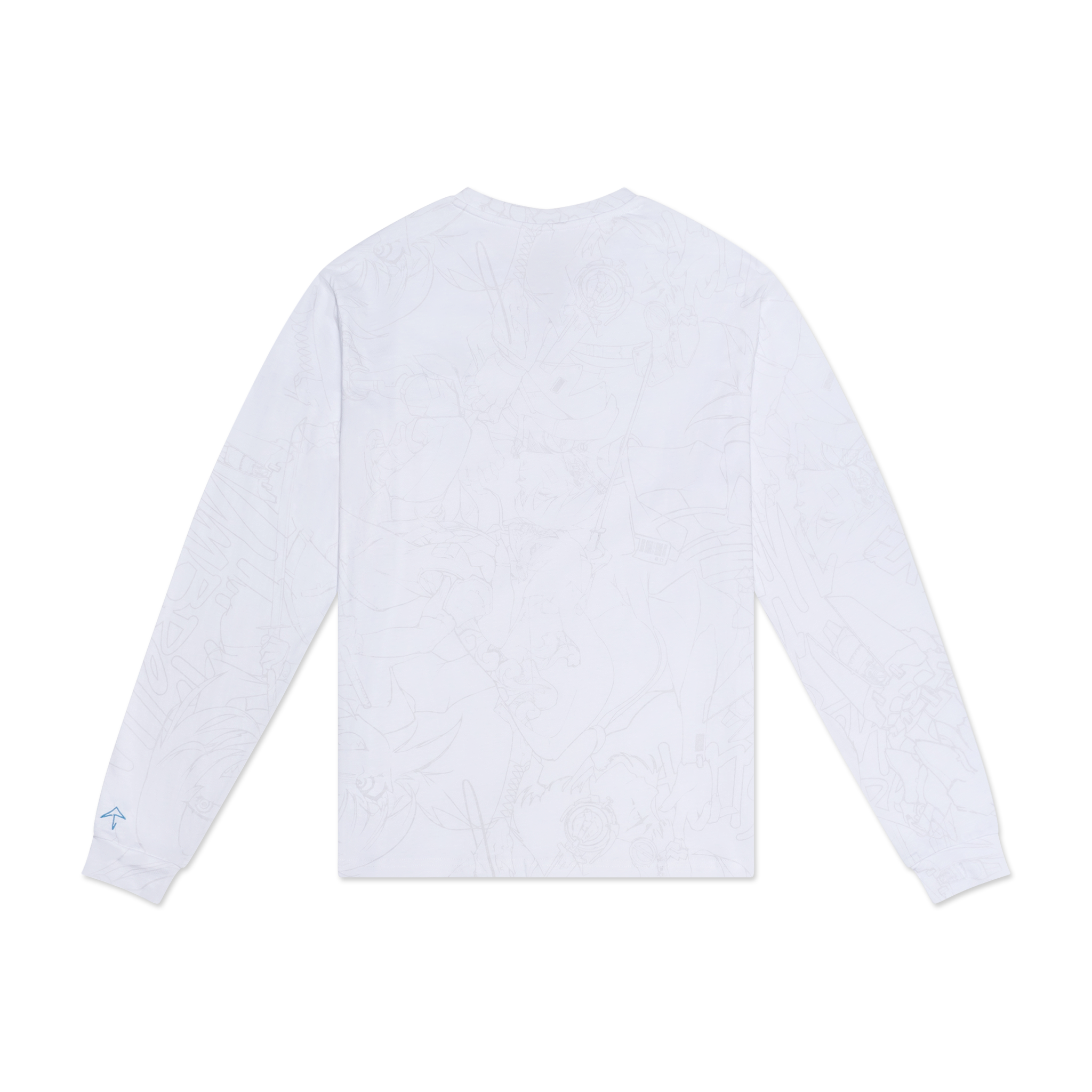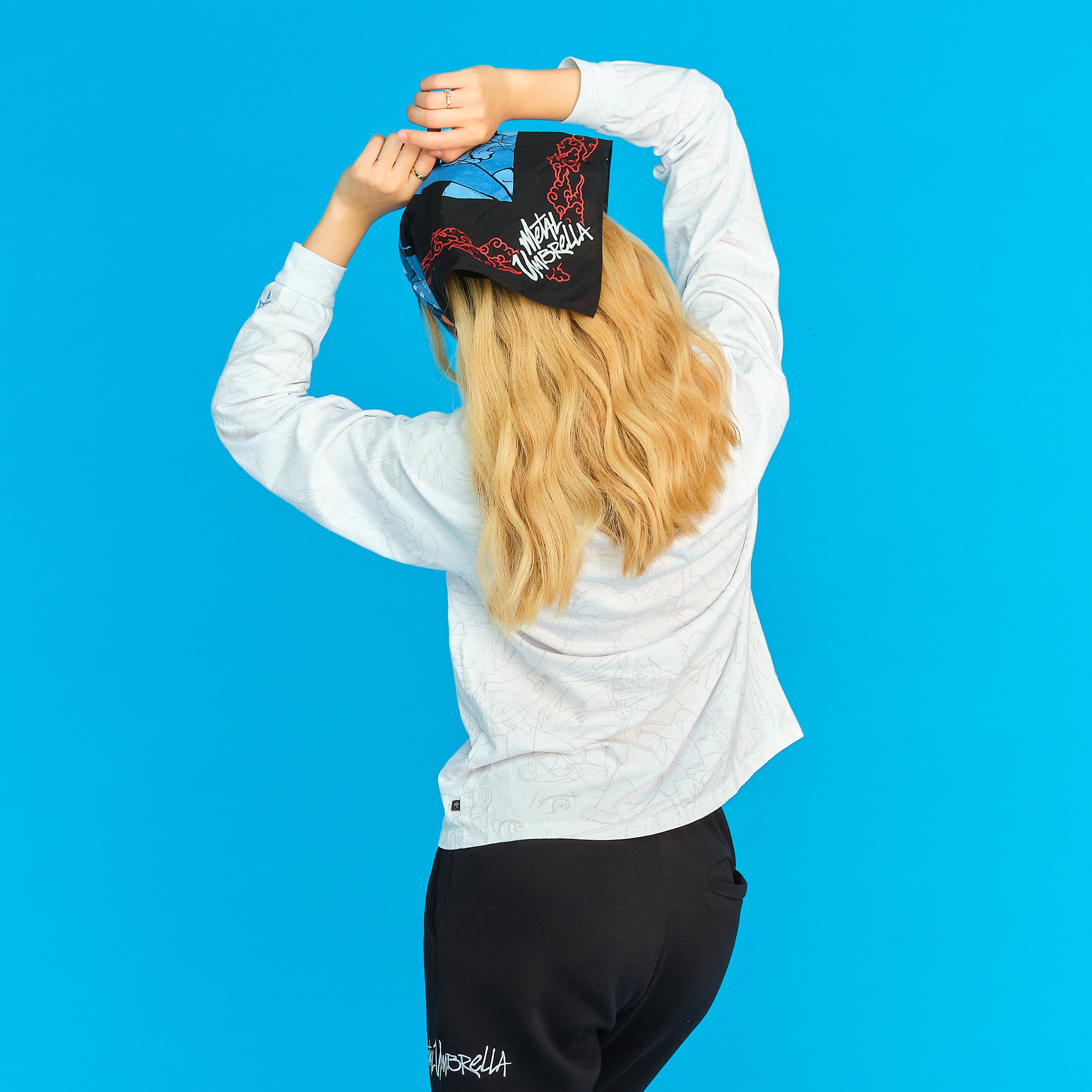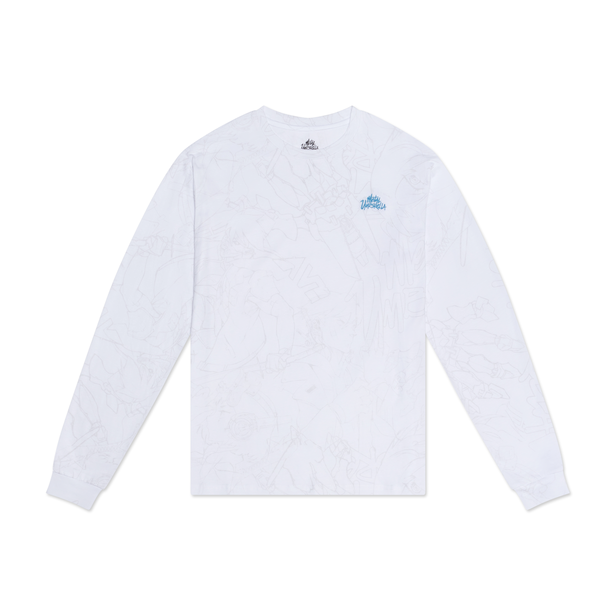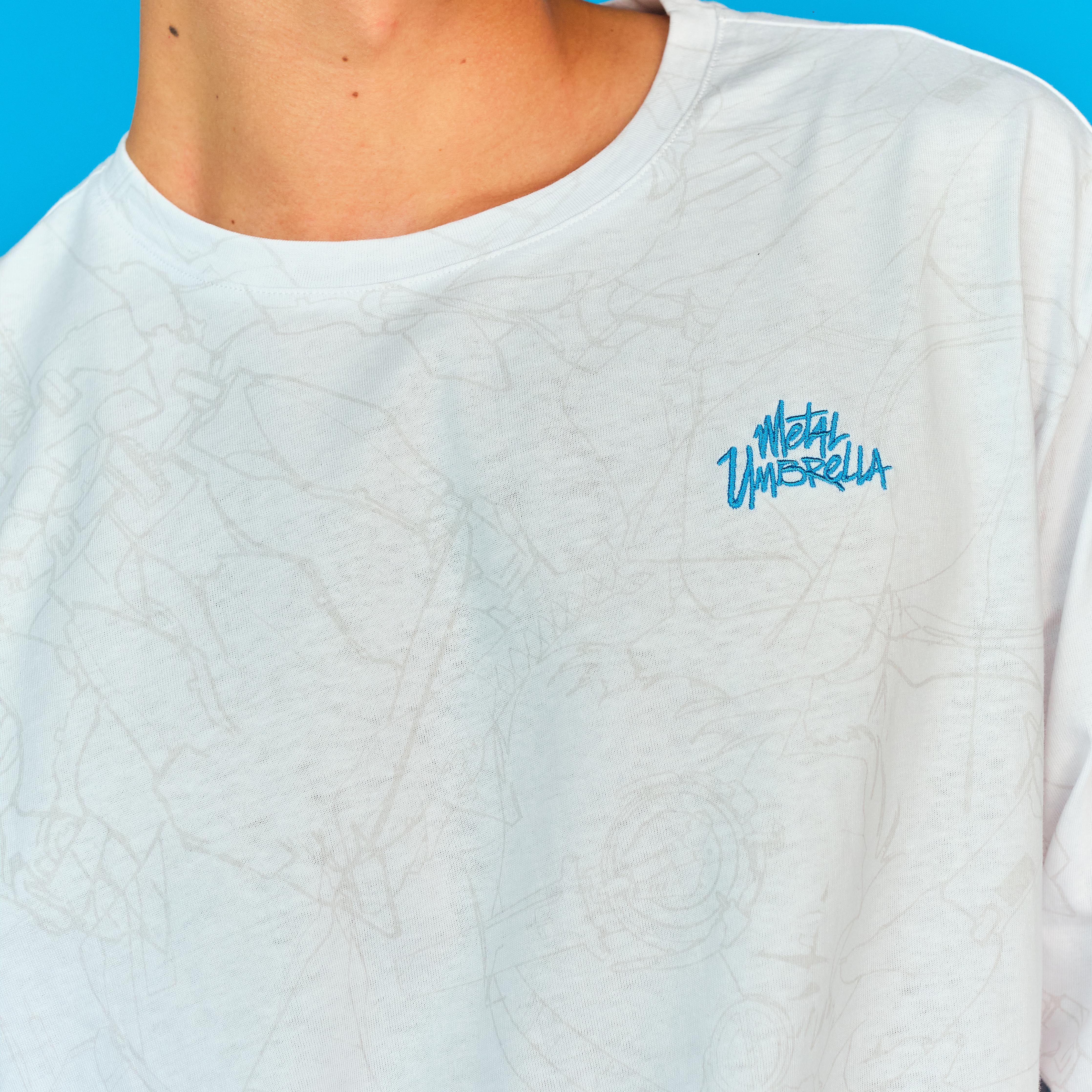 Tell us you love anime without telling us you love anime. Send it with the confidence you'll find in this marbled, white long sleeve. The Metal Umbrella logo and icon are tasteful splashes of blue, so your look can remain understated and simple.